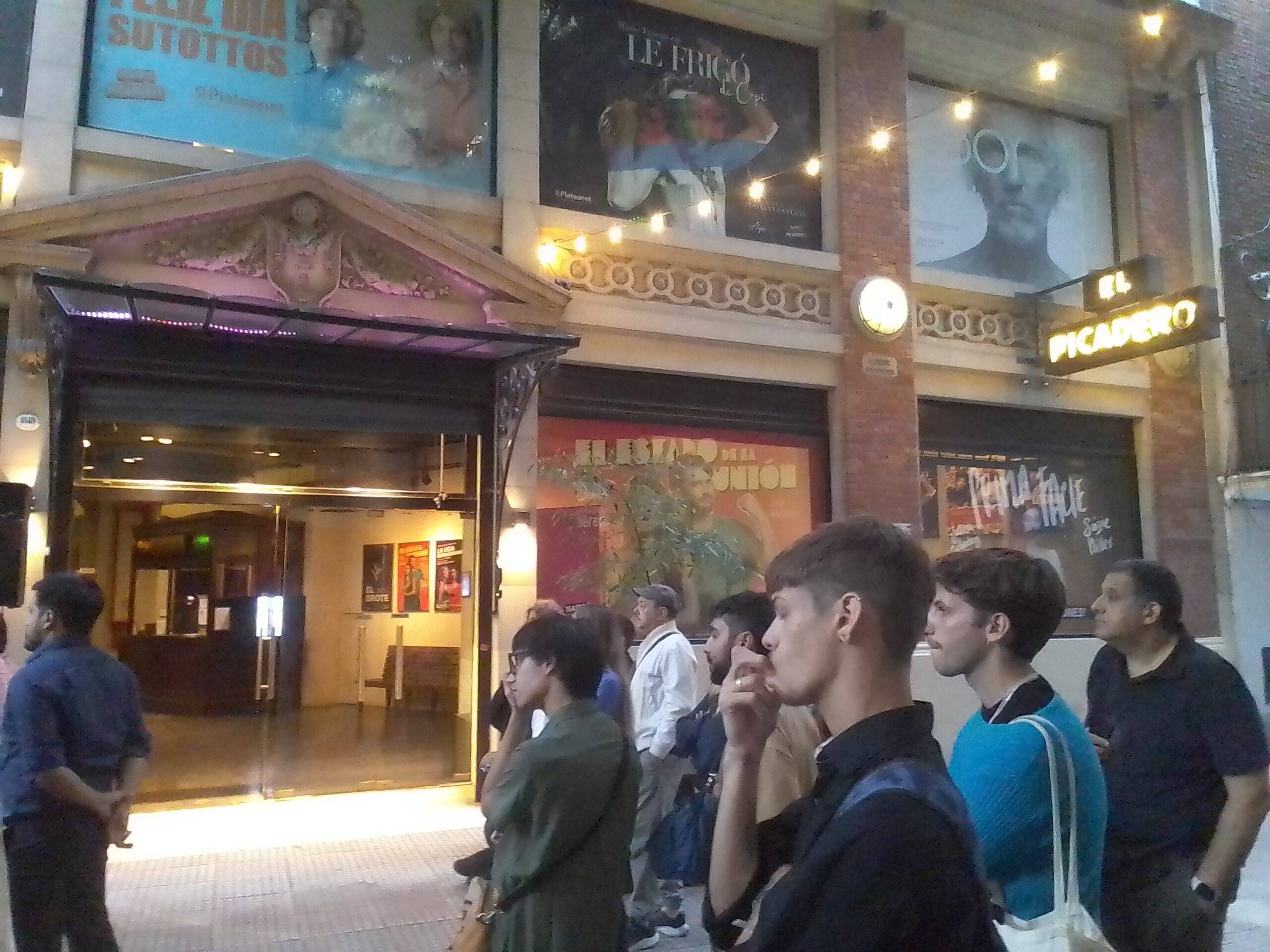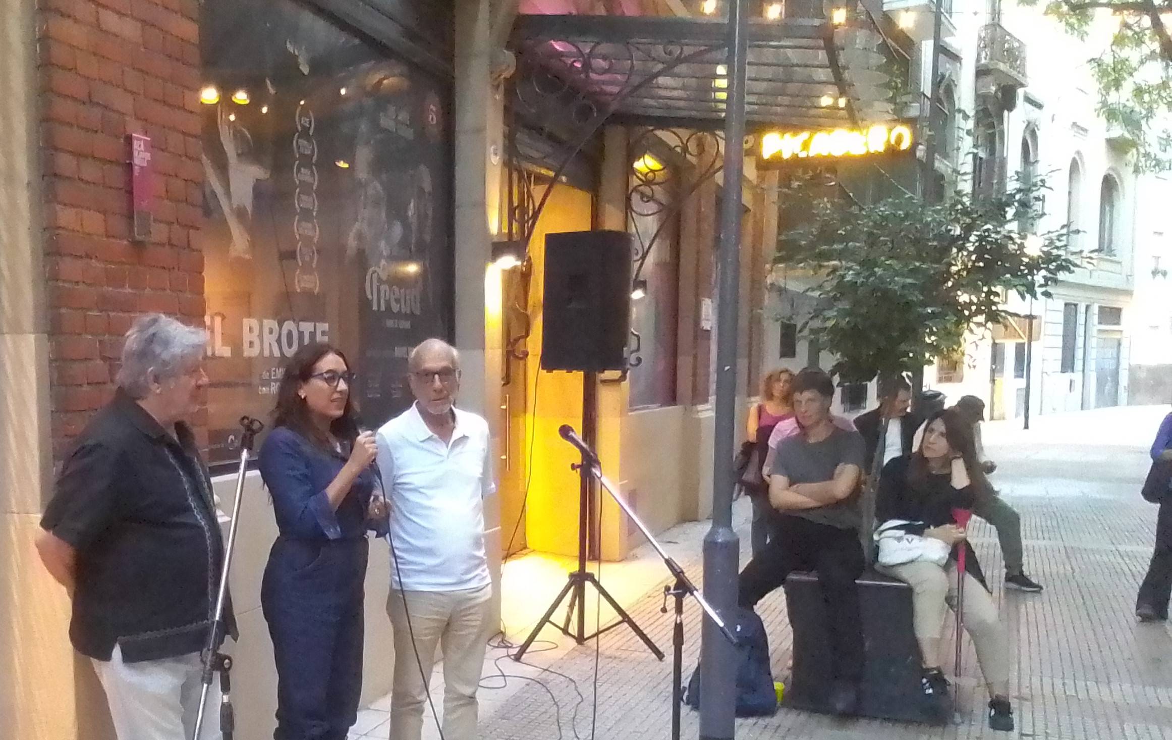 Ante esta sala se dio el primer acto de la cartografía en el atardecer del miércoles pasado. Allí, El Cohete contó a un centenar de personas que cortaron el pasaje curvo entre las calles Corrientes y Lavalle, cerca de Callao, para oír a algunos protagonistas contar cómo la dramaturgia hizo su aporte a la resistencia.