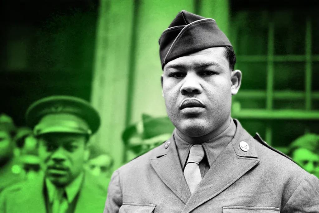 Tres semanas después de la rendición incondicional de Japón, y una semana antes de su licenciamiento, Joe Louis recibió la Legión al Mérito. Regresó a Detroit para ver a los Tigers en la Serie Mundial y comenzar a prepararse para su siguiente gran pelea. El querido boxeador pronto se dio cuenta de que, para los soldados negros que sirvieron valientemente en el ejército estadounidense, la vida de posguerra no estaría a la altura de sus expectativas sobre Estados Unidos.
