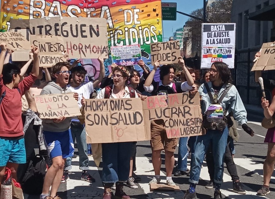 Y de nuevo en el bajo porteño: las hormonas no se recortan. Cientos de compañeros, compañeras y compañeres del colectivo trans y travesti se reunieron frente al Ministerio de Desarrollo Social, del cual depende la Secretaría de Salud de la Nación, para reclamar por el incumplimiento de la Ley 26.743 (Ley de Identidad de Género). Hay faltante de insumos para los tratamientos hormonales. “No confiamos en la respuesta que este gobierno nos vaya a dar respecto de nuestras demandas, pero de todas formas, presentamos un expediente directamente al Secretario de Salud de la Nación Adolfo Rubinstein y a Gabriela Perrota de la dirección de Salud Sexual y Reproductiva también de Nación”. Convocan nuevamente el lunes 21 de octubre a las 16 en la Plaza de Los Congresos, “para seguir pensando colectivamente cómo responder a este gobierno que sigue pensando que la salud es una variable de ajuste”.