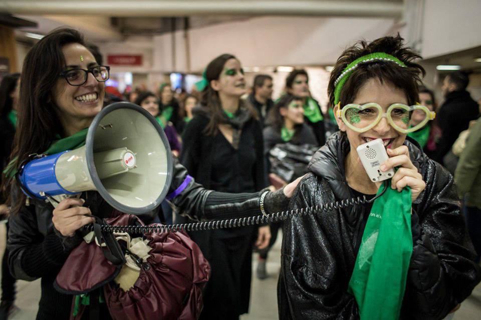El martes 31 de julio se llevó adelante una acción sorpresiva que partió al mismo tiempo de las cabeceras de las distintas líneas del subterráneo de Buenos Aires con el objetivo de realizar una intervención artística masiva, en favor de la aprobación de la ley de interrupción voluntaria del embarazo (IVE) que se votará en el Senado de la Nación el próximo miércoles 8 de agosto. Desde la mañana de ese martes, mujeres de distintas agrupaciones feministas, convocadas inicialmente por el Colectivo “Ni Una Menos”, por las Metrodelegadas del sindicato que el Estado intenta desconocer y por las integrantes de la Campaña por el Aborto seguro, legal y gratuito con la participación activa de decenas de organizaciones, se fueron concentrando en puntos cercanos a las estaciones cabecera, donde terminaron de ultimar detalles. La movilización tuvo como primer paso el descenso a las boleterías, con la lectura de una fuerte proclama común, la pegatina de carteles cambiando el nombre de las estaciones por las consignas de la campaña, canciones y actuaciones por parte de diversas músicas, actrices y otras artistas, y luego el descenso a los andenes para iniciar el viaje propiamente dicho. Durante el trayecto, mujeres de las distintas agrupaciones desarrollaron actividades que incluyeron la intervención de los vagones, la lectura de textos y poesías, la invitación a escribir deseos y pegarlos en paredes y carteleras, la pegatina de afiches e ilustraciones con las diversas consignas, y actividades que variaron en cada una de las líneas, interpelando y haciendo parte a todos y todas las/os presentes.