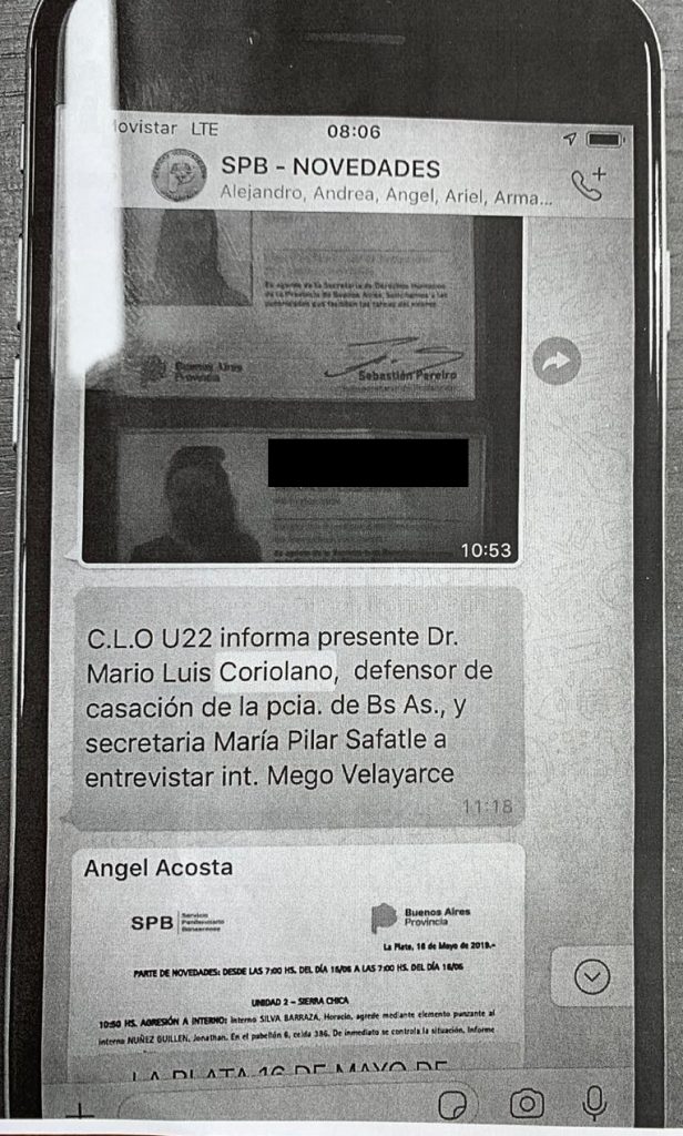 Como la denuncia contra Coriolano avanzaba, la fiscal María Cecilia Corfield le tomó declaración el 12 de agosto a Areses. El titular del SPB contó que hay dos grupos de WhatsApp: uno con los 12 jefes y jefas de complejos penitenciarios y otro con las autoridades del Ministerio de Justicia que comanda Gustavo Ferrari.