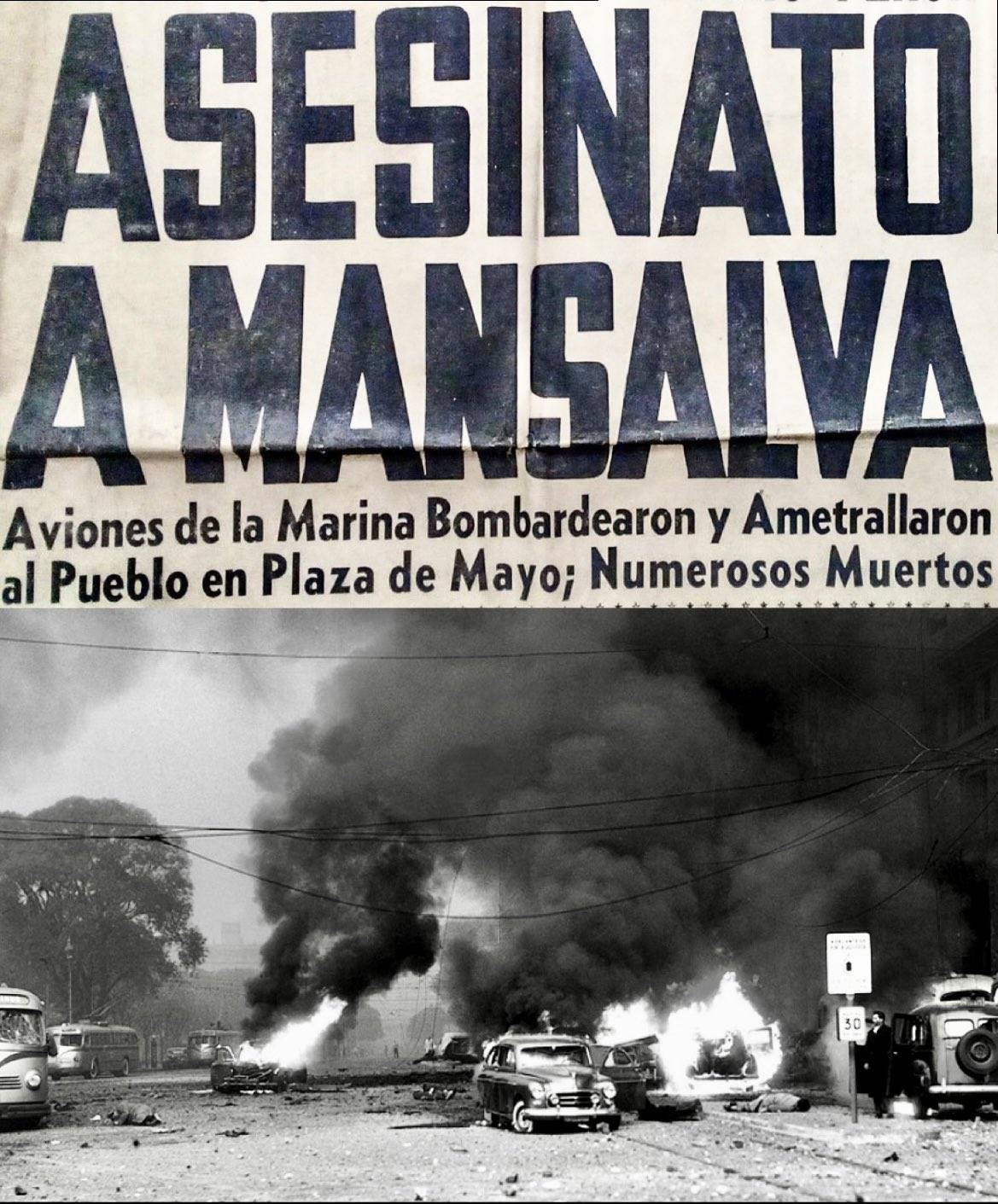 Todo eso acabó en el '55, cuando una facción golpista que prefiguró la del '76 (ejecutores militares, liderazgo burgués —la clase que Walsh definió como "temperamentalmente inclinada al asesinato"— y complicidad de la Iglesia católica) decidió matar a Perón. Pero no envenenándolo a lo Hamlet Sr., ni saboteando su auto, ni mediante un John Wilkes Booth o un Lee Harvey Oswald. Optaron por hacerlo a lo grande, a lo bestia: usando aviones del Estado para ametrallar el corazón de la capital de la República y arrojarle encima 14 toneladas de bombas. Estaba claro que, aun cargándose a Perón, iban a matar a mucha otra gente, que ni siquiera era de su entorno: bancarios y clientes de bancos, estudiantes, viejos y niños, colectiveros, empleados, barrenderos, maestras. Pero a pesar de esa certeza, decidieron mandarse. Porque, además de matar a Perón, querían inspirar terror. En particular en el pueblo peronista, para disuadirlo de volver a defender a su líder, como en octubre del '45.
