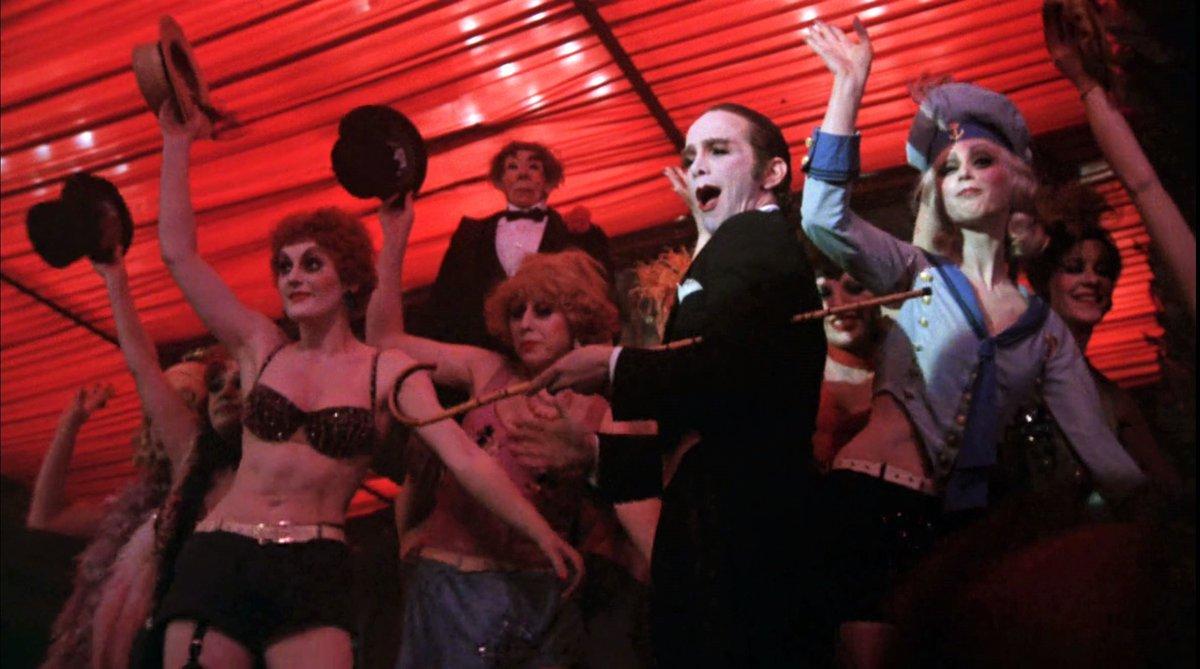 Cabaret cuenta la historia de un puñado de personajes que bailan en un salón del Titanic, sin terminar de advertirlo. Algunos, como Sally y Brian, han ido a Berlín en pos de una libertad de la que carecían. El barón Max trata de prolongar su divina decadencia, en la antesala del desastre. Y el judío pobre Fritz (Fritz Wepper) y la judía rica Natalia (Marisa Berenson) creen que el amor todavía es posible, en un mundo que está a punto de proscribirlo. El epicentro dramático es el Kit Kat Club, donde Sally canta y las veladas son animadas por un Maestro de Ceremonias —el papel de Joel Grey— que exhibe su amoralidad como quien luce una pilcha nueva. La cámara de Isherwood y del director Bob Fosse hace foco en el cabaret como microcosmos que permite contarlo todo. Al comienzo, un nazi es echado del cabaret a patadas. Al final, sobre una de las superficies bruñidas del Kit Kat Club, se impone el reflejo deforme de los nazis que coparon el lugar.