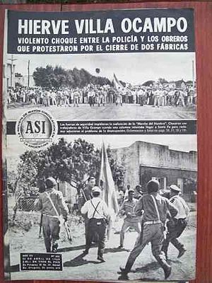 Fue un verdadera “pueblada” al mejor estilo de fines de los '60, cuando verdaderas insurrecciones populares dieron por tierra con la pretendida dictadura más larga de la historia. Onganía duró apenas cuatro años, pero sus cómplices quedaron y siguieron acumulando poder y riquezas. Sucedida a pocos kilómetros de Avellaneda, el recuerdo de la lucha de Villa Ocampo trae la memoria histórica a la marcha. Las ocho cuadras de manifestantes ruidosos y coloridos que recorrieron las secas calles de Reconquista maldiciendo a Vicentin y apoyando la lucha obrera respondían al desmesurado despliegue policial a pedido del juez Santiago Banegas, quien había ordenado desalojar el acampe en la puerta del parque industrial de Reconquista.
