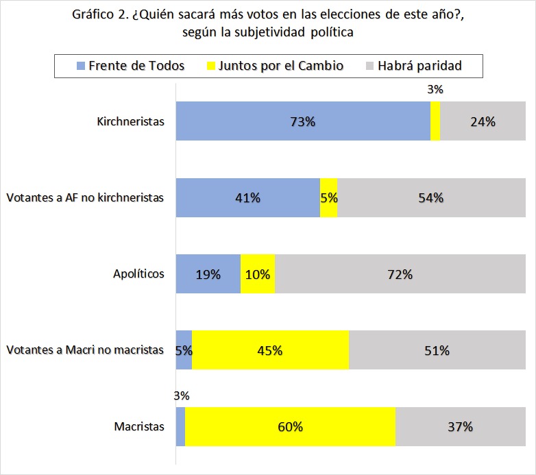 El gráfico 2 muestra cómo inciden estas subjetividades políticas a la hora de estimar el resultado de las próximas elecciones: