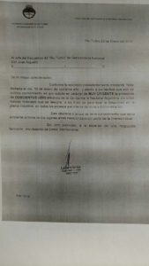 "Conforme a los hechos de público conocimiento, es que solicita con carácter MUY URGENTE la presencia de 200 efectivos de Gendarmería Nacional y/o fuerzas federales a los fines de garantizar la seguridad en la planta industrial y en todos los accesos al interior de la mina y administración". El texto fechado el 23 de enero y firmado por el coordinador general Sergio Lumachi señala que la decisión obedece a que sería inminente la toma de estos lugares. Sin embargo las tomas no están decididas: los trabajadores están esperando de modo pacífico y en asamblea una reunión a celebrarse con los directivos de la compañía el próximo lunes. Y sólo decidieron tomar la mina si se acerca Gendarmería.