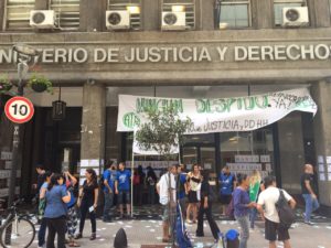 ATE en la puerta del ministerio de Justicia reclama contra los despidos en el Instituto Universitario de Derechos Humanos de Madres de Plaza de Mayo.
