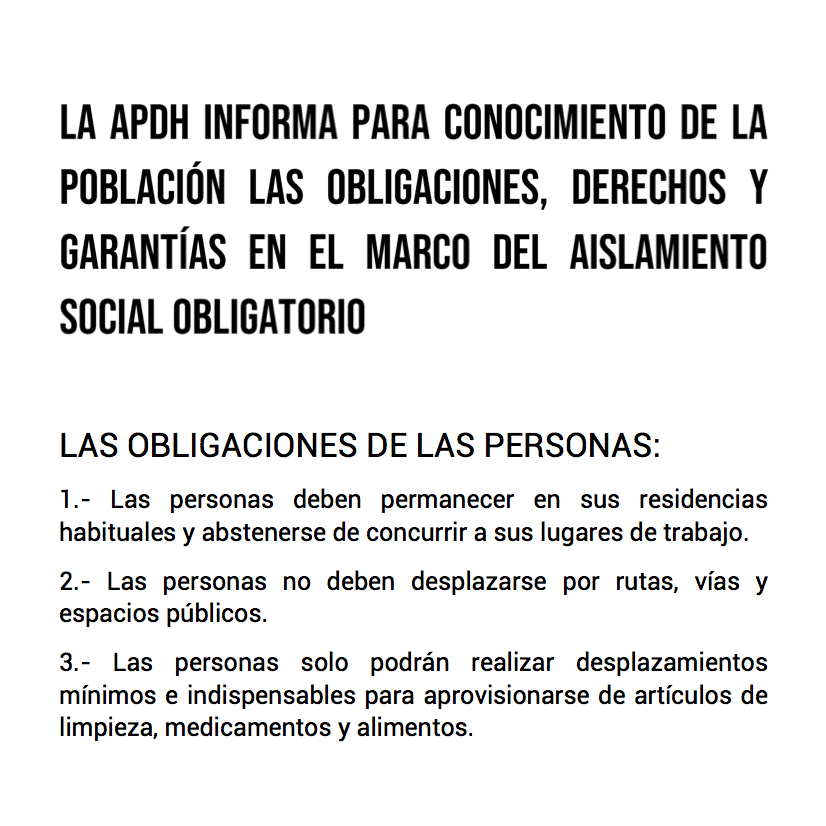 Descagá el Intructivo: Obligaciones, derechos y garantías en el aislamiento - Resumen APDH