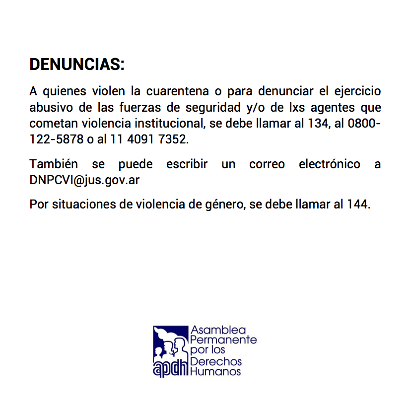 Ante la sucesión de abusos policiales en todo el país con el pretexto de la cuarentena, la Asamblea Permanente por los Derechos Humanos preparó este instructivo con los derechos y obligaciones de la ciudadanía y de las fuerzas de seguridad.