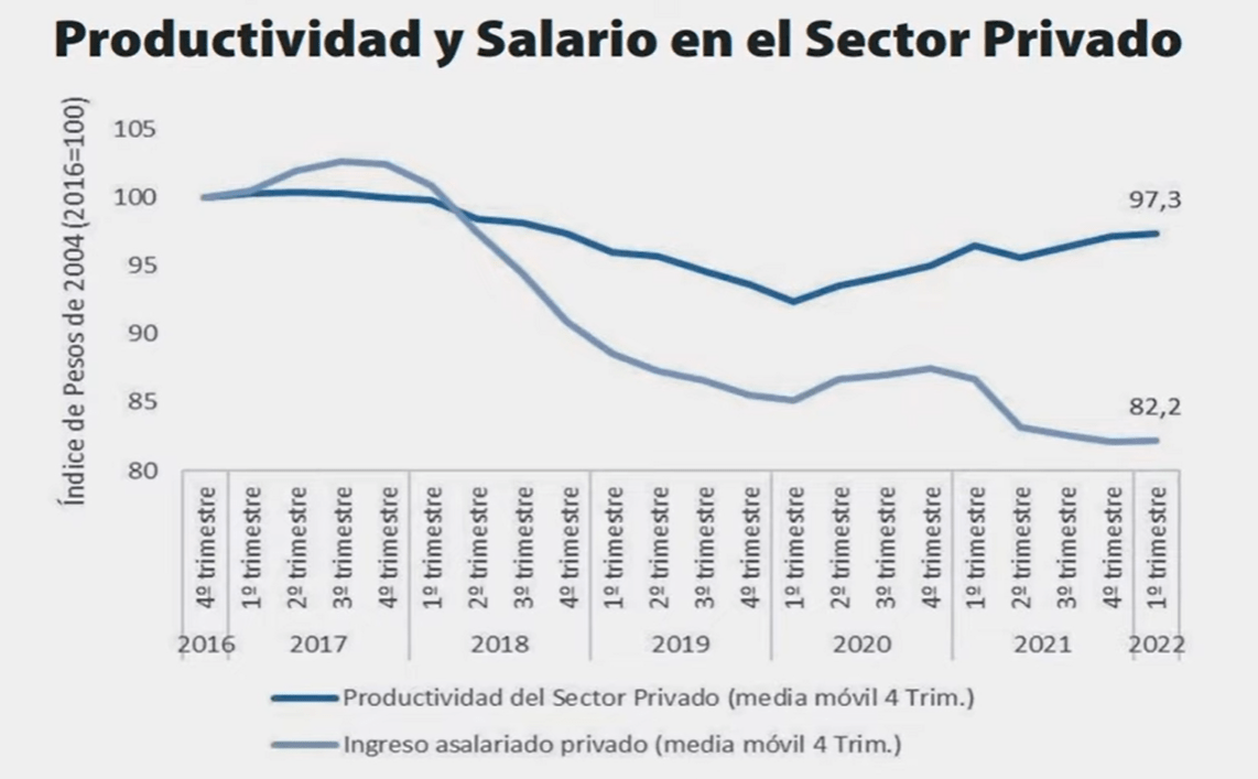 Y quiero también referirme un poquito, poneme el segundo gráfico, para hablar del salario y hablar con números, porque cuando uno habla de economía tiene que hablar con números, no con eslóganes ni con consignas, con números.