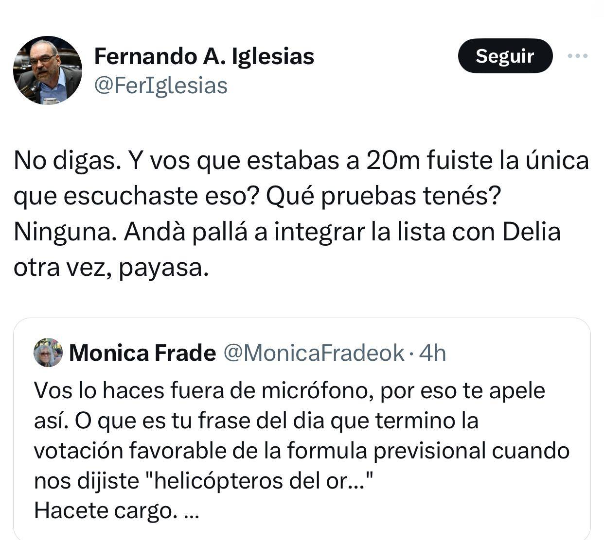 En ese debate en comisión, una legisladora de la Coalición Cívica que por entonces viajaba a provincias lejanas trató de“cagón” a otro –de habituales guarangadas– que murmuraba mientras ella exponía. Después se disculpó pero no porque no lo pensara –aclaró– sino por habérselo dicho en ese solemne recinto. El la trató de“payasa”, en la red de ya saben quién.
