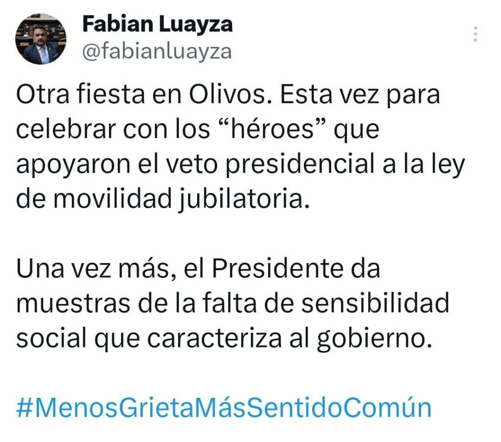 Otro distanciado de LLA en la Legislatura bonaerense, mucho más perceptivo –al punto que fue de los primeros en pegar el salto– comparó el asado por los jubilados con la fiesta de cumpleaños durante la pandemia en la misma sede.