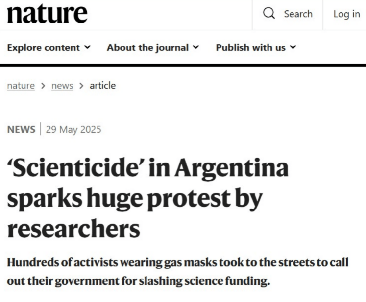 Publicada en el Reino Unido desde 1869, Nature es actualmente propiedad del grupo Holtzbrinck, de Alemania, país al que se parecerá el nuestro en 2044. Ese pronóstico presidencial omite que allí no aplican motosierra sobre la ciencia e innovación, sino creciente riego: si hasta 2025 Alemania destinaba el equivalente a alrededor del 3% de su PBI para esas actividades, para este año se propuso que subiese a 3,5%.