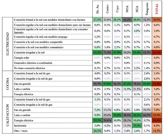 En su edición del segundo semestre de 2022, la revista Energías Renovables y Medio Ambiente publicó un artículo en que Danae Franco Lopera, Rodrigo Durán y Miguel Condori analizan datos recogidos por el Registro Nacional de Barrios Populares en julio del mismo año. De ello surge que el 62% no cuentan con conexión eléctrica formal y el 97% carece de acceso a la red de gas, por lo que no se verían beneficiados por política alguna de subsidios, incluyendo la segmentación. Son barrios privados, según la inolvidable definición del más mágico de sus habitantes.