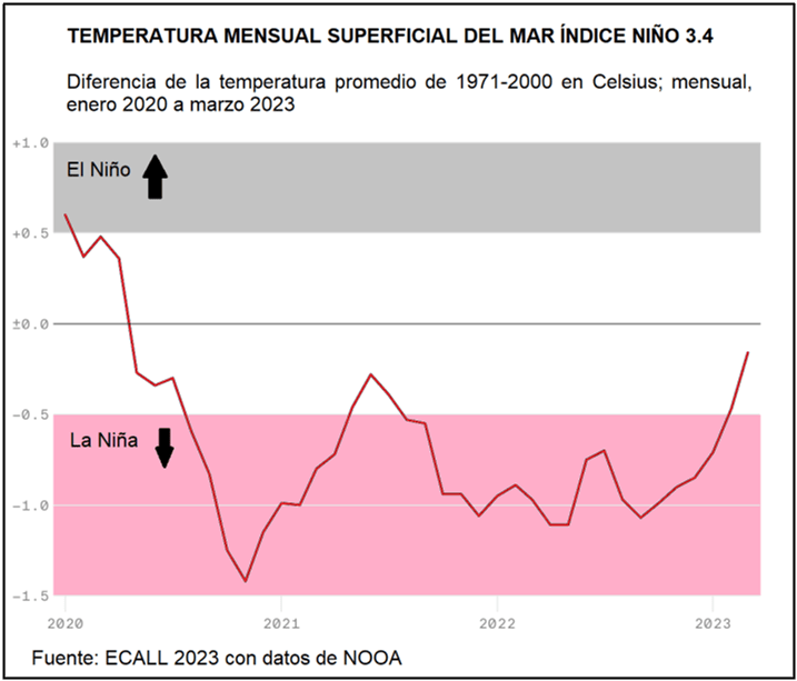 Un doble golpe de los ciclos climáticos naturales y el cambio climático causado por el hombre probablemente hará que el próximo año sea el más cálido registrado en la Tierra, de acuerdo a los más fundamentados análisis meteorológicos. Tres años consecutivos de La Niña, que presenta temperaturas de la superficie del mar más frías de lo normal en el Pacífico tropical, han dado paso a una rápida transición hacia El Niño. El Niño se asocia con el cambio climático causado por el hombre y aumenta las temperaturas superficiales promedio globales. Incluso un evento relativamente débil podría generar nuevos récords para tener el año más cálido en 2023 y 2024. El último récord mundial ocurrió en 2016, que también fue un año de El Niño. La Administración Nacional Oceánica y Atmosférica de los Estados Unidos (NOAA, por sus siglas en inglés) informó sobre la vigilancia de El Niño la semana pasada. Los últimos ocho años fueron los más cálidos de este tipo registrados. Y tan sólo en las últimas semanas, las temperaturas del océano alcanzaron niveles sin precedentes.