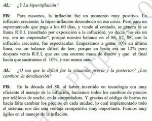 Nadie se hizo eco en la trifecta mediática del hallazgo del joven periodista Agustín Gulman, quien desempolvó una entrevista de 2008. La realizó la investigadora pampeana Andrea Mari Lluch, dentro de un proyecto sobre mercados emergentes de la Facultad de Negocios de la Universidad estadounidense de Harvard. Aquí podés leer completa la entrevista, de 38 páginas, y este es el fragmento en que Federico Braun explica con la mayor seriedad y sin atisbos de risa, las ventajas de la hiperinflación para el supermercadismo.