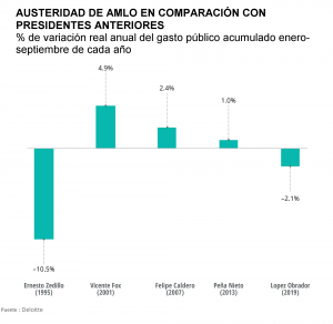 En la construcción de una república amorosa y fraterna, según el latiguillo emblemático de AMLO, no le ha ido nada bien al mandatario mexicano. Después de su victoria electoral aplastante en 2018, de la mano de su mentada y nefasta austeridad republicana, la economía se estancó y no hay ni miras de revertir la situación. En 2019 el sector industrial declinó alrededor de 1,5%, el sector servicios paralizado con 0,1% de avance y el primario (agricultura) creció 5,4%. El espíritu que anima la política económica mexicana realmente existente lo categorizó el economista Agustín Carstens, un prócer del establishment azteca, cuando en un reportaje a la revista Americas Quarterly (07/2016) dijo que se definía a sí mismo y a sus conciudadanos de la misma franja etaria (60 años) como: "La generación de los 12,50", porque desde 1954 hasta 1976 el peso mexicano se fijó exactamente y se mantuvo en 12,50 por dólar. Cartens, que fuera reciente presidente del banco central de México y previo ministro de Finanzas, reviste ahora como gerente general del Banco de Basilea.