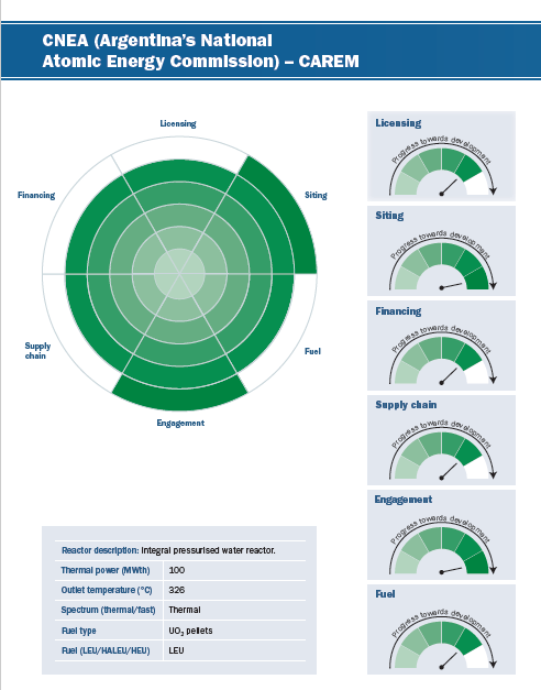 El otro ejemplo muestra que Argentina fue capaz de desarrollar un prototipo de pequeño reactor modular –el CAREM-25–, que además promete participar de un mercado incipiente de exportación para países en desarrollo. La NEA (Nuclear Energy Agency) de la OCDE realizó una evaluación de los pequeños reactores modulares que se están desarrollando en el planeta, analizando seis dimensiones: financiamiento, licenciamiento, emplazamiento, elementos combustibles, cadenas de suministros y compromisos para futuros desarrollos. De alrededor de 70 proyectos, el CAREM figura entre los cuatro primeros. ¿Cómo se explica? Por el sendero de aprendizaje, la institucionalidad del sector nuclear y su orientación hacia el desarrollo de capacidades autónomas.