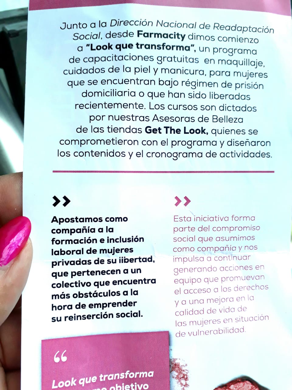 Farmacity presenta la propuesta como un programa elaborado por las asesoras de belleza de un área que también tiene nombre en inglés, Get The Look. Las encargadas de comunicación explicaron todo con mucho detalle. Dijeron que Farmacity es la primera empresa argentina en realizar capacitaciones en materia de belleza a mujeres privadas de su libertad o liberadas recientemente, en vista de su formación laboral y en pos de su formación profesional.