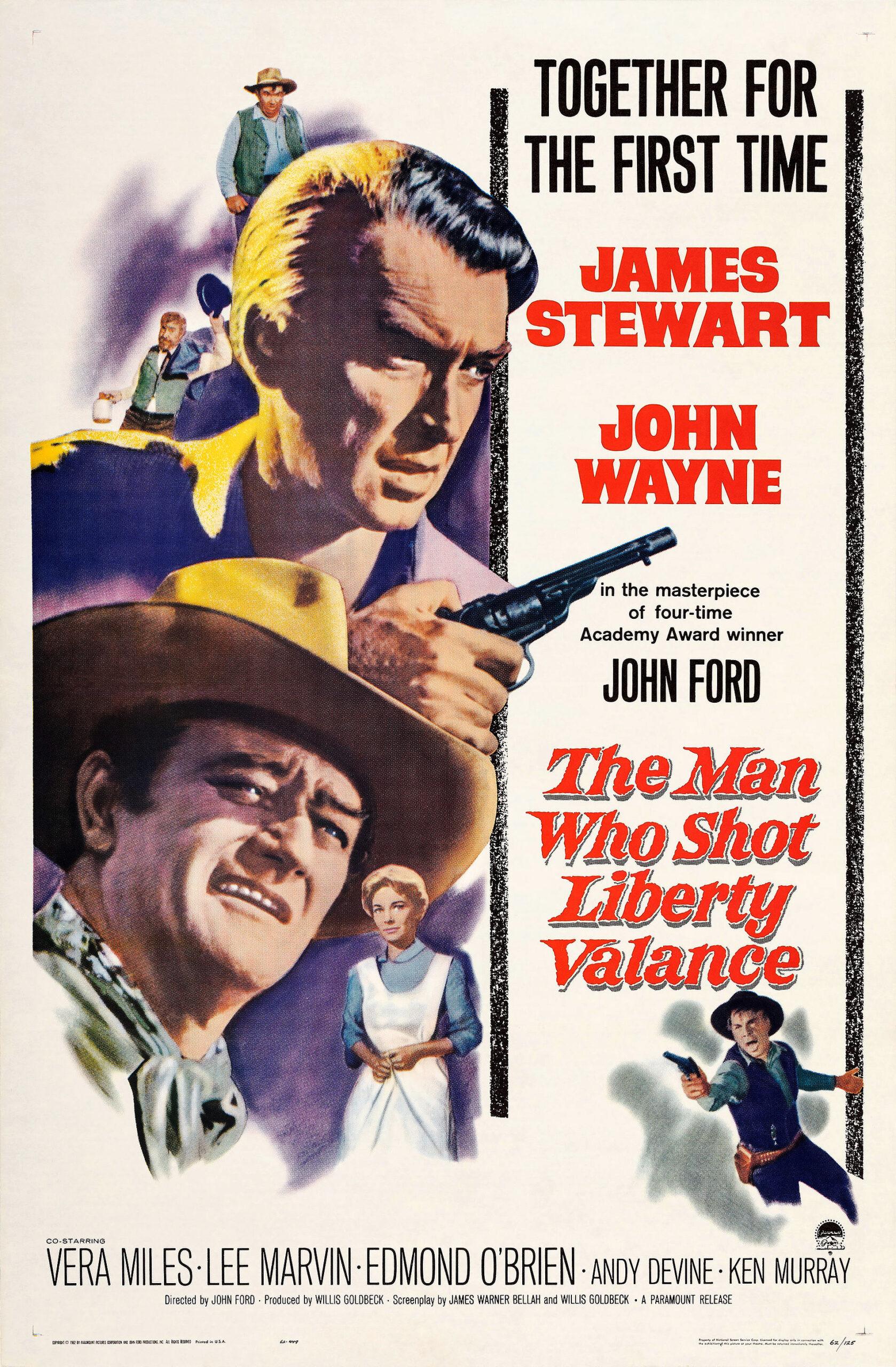 Liberty Valance es la historia de un joven abogado llamado Ransom Stoddard (James Stewart), que se dirige a un pueblo del Oeste llamado Shinbone con la intención de labrarse un futuro. Poco antes de llegar, la diligencia que lo transporta es asaltada por la banda que lidera el matón local, Liberty Valance (un Lee Marvin deliciosamente patotero). Stoddard da un paso al frente para defender a una pasajera y Valance le propina una golpiza con su látigo, que lo deja al borde de la muerte. Así, moribundo y abandonado, lo encuentra un modesto ranchero local, Tom Doniphon (John Wayne). Doniphon lo traslada al pueblo y lo deja al cuidado de gente de su confianza: la familia de inmigrantes que está a cargo del comedero local: Nora y Peter Ericsson, suecos de nacimiento. Pero quien vela por él de manera constante es otra joven, la camarera Hallie (Vera Miles), a quien Doniphon corteja desde hace tiempo con la idea de proponerle casamiento.