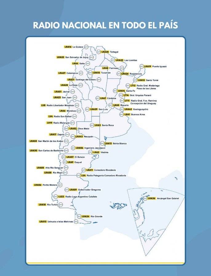 Desde hace un par de semanas sus trabajadores están en la calle juntando firmas de ciudadanos, como antes lo hicieron los de Banco Nación, la agencia Télam, CONICET o Aerolíneas Argentinas. Esta apreciada forma de autodefensa tiene un propósito doble: rechazar una posible privatización y visibilizar la importancia institucional y estratégica de una radio de bandera, que incluso tiene una filial en la Antártida. Cuando se habla de la LRA, que el próximo 6 de julio cumplirá 87 años (inicialmente, como Radio del Estado), no sólo se alude a la AM 870, sus tres FM’s temáticas (Folklórica, Clásica y Rock) y Radio Argentina al Exterior (RAE) sino que engloba a las 49 crías sonoras en AM de todo el país y otras tantas frecuencias moduladas: bastante más de cien radios. Vale decir que lo que está en juego es una descomunal pérdida de puestos de trabajo para periodistas, técnicos, administrativos, hasta personal de limpieza y, ni que hablar, del doloroso arrebato de identidad regional.