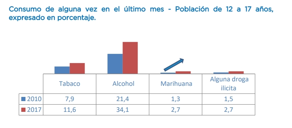 [2] “Resumen de los Resultados del Estudio 2017 de Consumo de Sustancias Psicoactivas”. Población de 12 a 65 años. SEDRONAR, En línea. https://bit.ly/2CImPlZ(Pág. 4)