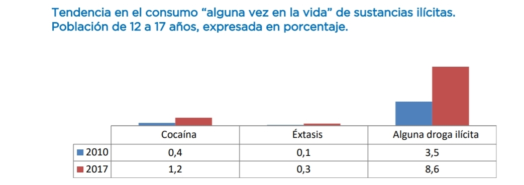 El enorme aumento del consumo de todos los grupos de sustancias prohibidas, y la asumida facilidad de acceso a las mismas, declarada por los entrevistados en las investigaciones del Observatorio, sólo puede ser asociado a una distribución territorial más amigable para determinados grupos mafiosos, en detrimentos de otros. Los datos comparativos a nivel nacional (entre 2010 y 2017) muestran un incremento descomunal: los niños y adolescentes, entre 12 y 17 años, han duplicado su consumo de éxtasis, marihuana y el resto de las drogas ilícitas en los últimos años. La pretendida batalla contra el narcotráfico, publicitada con grandilocuencia de explosiones guionadas, búnkers derribados y operaciones cinematográficas, no logran disimular los datos más trascendentes.