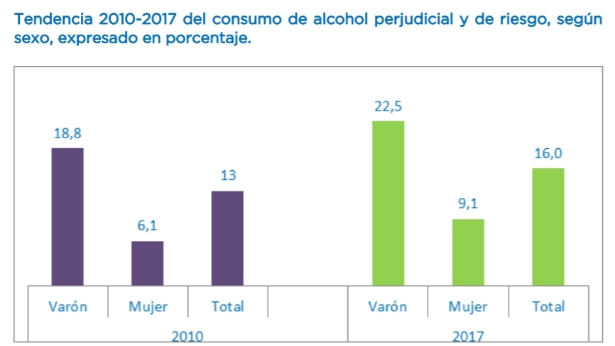 El fracaso de las políticas instauradas se evidencia además en los consumos adictivos legales, como el alcohol, que son los más generalizados y los que más daños producen a la salud pública. La ingesta de alcohol se incrementó un 20 % desde que Macri llegó al gobierno. Pero entre las mujeres el aumento es mayor: alcanzó indicadores superiores al 40 % de crecimiento. Los indicadores definen la gestión como un fracaso en toda la línea. Incluso en aquellas dimensiones que fueron proclamadas como prioridades gubernamentales.