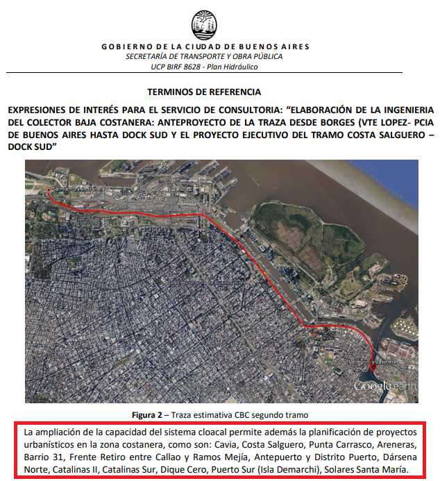 El GCBA advirtió que, para concretar su ciudad ribereña destinada al sector de la población de mayores ingresos, la actual infraestructura del sistema de desagües resulta insuficiente para recolectar y evacuar los efluentes cloacales de los nuevos emprendimientos urbanos planificados en la zona costanera. A partir de esta necesidad decidió avanzar con la obra del Colector transfiriéndole al conjunto de la ciudadanía porteña todos los costos del proyecto y de la ejecución de la obra (160 millones de dólares).