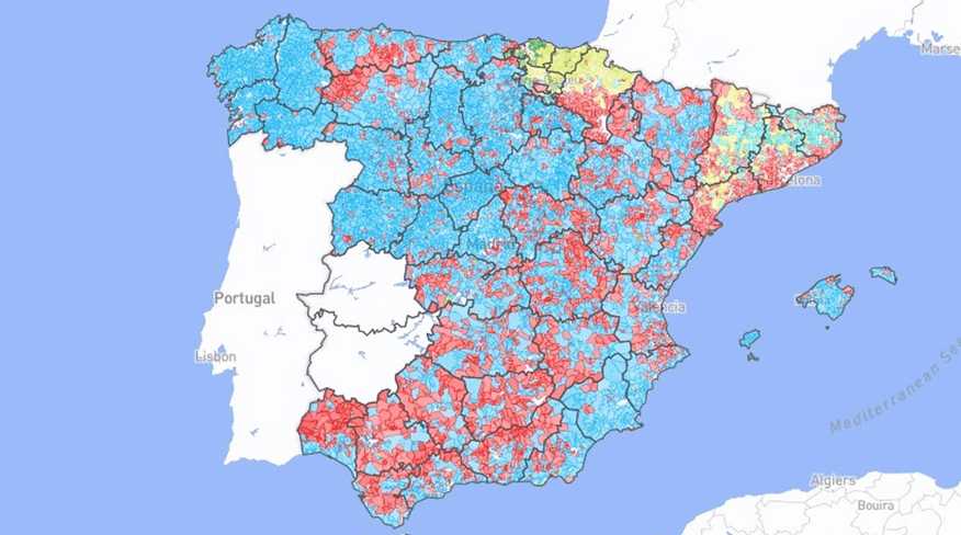 Si vemos el mapa estatal podremos ubicar ambas regiones justamente porque aparecen pinceladas de colores por fuera del bipartidismo PSOE (rojo) – PP (azul), sobre todo en el País Vasco. Dejando de lado el análisis sobre la contienda electoral de cara al PSOE, veamos cómo les fue a los dos partidos de derecha y extrema derecha española en lo que podemos llamar jocosamente la “Galia” vasca.