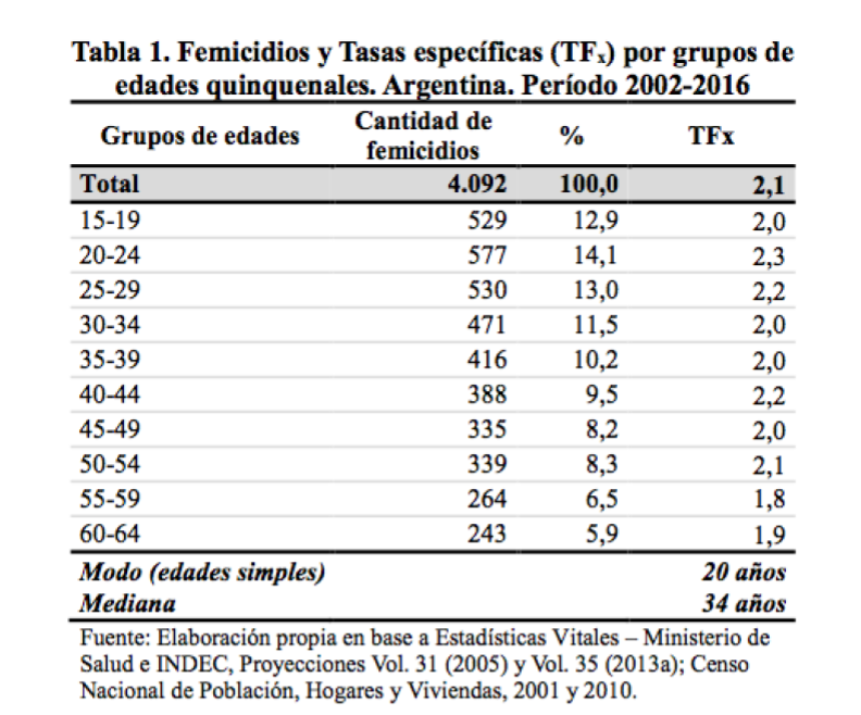 Este dato relativiza la suposición de que la violencia femicida ataca especialmente a las mujeres jóvenes. Hay más víctimas jóvenes, pero esto es porque también hay más personas jóvenes.