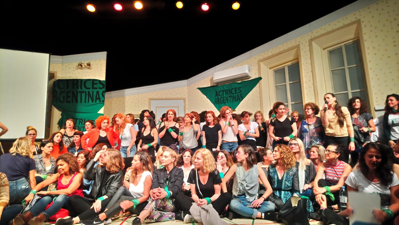 No es un tribunal con jueces y crucifijos. No hay secretarias ni estrados. Es un teatro en plena calle Corrientes. Sobre las tablas del escenario en una especie de dormitorio adornado con pañuelos verdes enormes, un centenar de mujeres del colectivo Actrices Argentinas. Algunas están sentadas en el piso, otras en sillas, algunas más paradas. Hay una pantalla enorme y una luz que se apaga para ver y escuchar a Thelma Fardín contar una violación frente a cámara. En una habitación de hotel ella reconstruye un crimen de poder: el actor Juan Darthés, de 45 años, la viola a los 16 años. Están en Nicaragua en una gira de la tira juvenil Patito Feo. Durante nueve años ella guarda ese crimen en su memoria. Cuando escucha a otra actriz, Calu Rivero, contar una situación de abuso sexual  en el ámbito laboral, decide hacerlo público. El pacto de silencio se rompe.