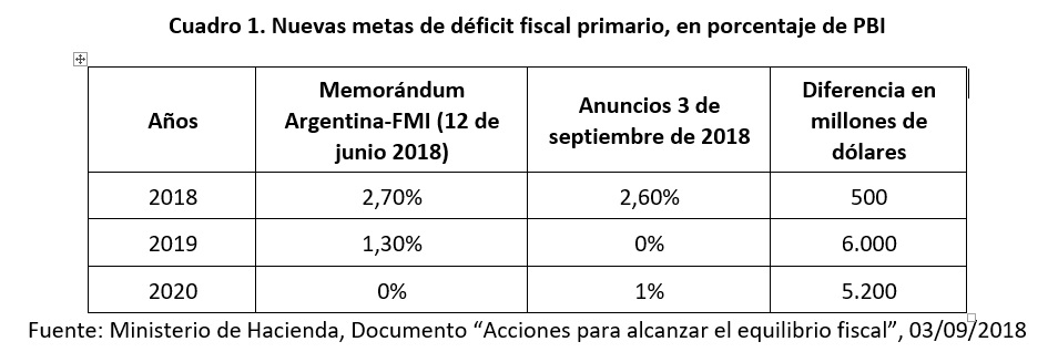Previo al viaje a Washington, y como preparación del terreno para las negociaciones con el directorio del Fondo Monetario Internacional al que la Argentina solicitó flexibilizar el calendario de desembolsos, el Ministro de Hacienda Nicolás Dujovne anunció el 3 de septiembre nuevas medidas de ajuste fiscal con la novedad de la introducción de cambios impositivos en la vía de ingresos.
