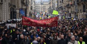 Sin llegar a un acuerdo, el gobierno francés y las centrales sindicales galas volvieron a reunirse para buscarle una salida a la huelga del transporte que ya batió el récord histórico de la década del '90. La edad de retiro, que el gobierno pretende sea a los 64 años, unifica a toda la oposición sindical. Esta semana se sumaron los expendedores de combustibles, los abogados y los docentes. El ausentismo de los maestros rondó el 40%, aunque el núcleo duro sigue siendo el transporte urbano. Los trenes, los subterráneos y los autobuses ya llevan 36 días continuados de huelga. El jueves se concretó una nueva movilización. Fue multitudinaria, más de un millón y medio de personas en todo el país, según los organizadores. En Paris la columna partió de la Place de la Republique, pasó por las Gare du Nord, Gare St. Lazare y terminó cerca del Elysée en la Place Saint Augustin. Philippe Martínez, secretario general de la CGT francesa, informó que en la jornada se realizaron 216 manifestaciones, hecho que nunca había sucedido en esa escala.