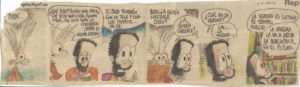 En un pizarrón de corcho que está frente a mi lugar de trabajo, junto papelitos sueltos, frases que me gustaron o conmovieron, fotos, mensajes que me interpelan. Entre esos materiales, solo significativos para mí, vuelvo a ver una vieja tira de Miguel Rep en la que aparecen personajes como la preadolescente Auxilio y su papá, conocido como Gaspar el revolú.