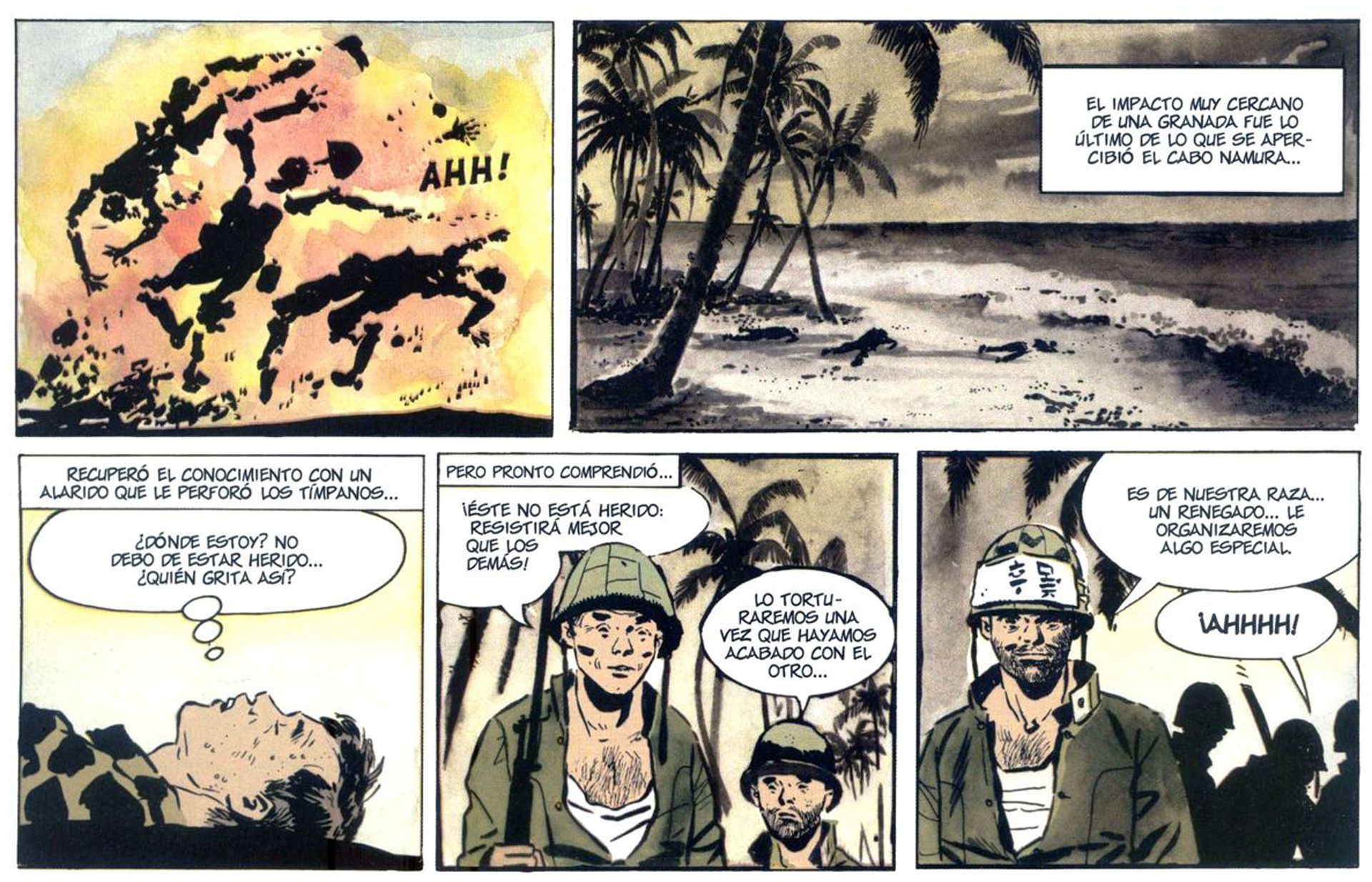 Sin detrimento de su excelencia literaria y estética, Corto Maltés constituye el adalid de un individualismo lírico que se contrapone no sólo con Ernie Pike o El Eternauta, sino con el conjunto de los personajes de Oesterheld. Para quien el héroe es colectivo, puede personificarse a condición de sumirse en un código que implica solidaridades de conjunto. En los cinco volúmenes que se reeditan ahora en nuestro país, el horror bélico sirve de estricto escenario a sendos combates internos, desatados en circunstancias extraordinarias. Como señala la fina pluma de Juan Sasturain en el prólogo, se trata de “hombres de diferentes bandos, puestos bajo presión moral (que) afrontan situaciones límites y optan, en última instancia, por elegir la humana comprensión, más allá de las circunstancias feroces que obligarían a dejarla de lado”.