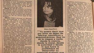 Hay una parte interesante de este debate donde Jáuregui, encendido, le exclama a Ikonicoff: “No me compare con un esquizofrénico”. Esto quizá hoy puede sonar alocado dado que al menos el sector mayoritario de la población no confundiría determinada orientación sexual con una patología, pero cabe recordar que fue recién el 17 de mayo de 1990 que la OMS resolvió eliminar a la homosexualidad de la lista de enfermedades mentales y la aceptó como una variación de la sexualidad humana. De allí el llamado que se puede ver en la siguiente publicación de la militante lesbiana, integrante del Grupo Federativo Gay, Elena Napolitano.
