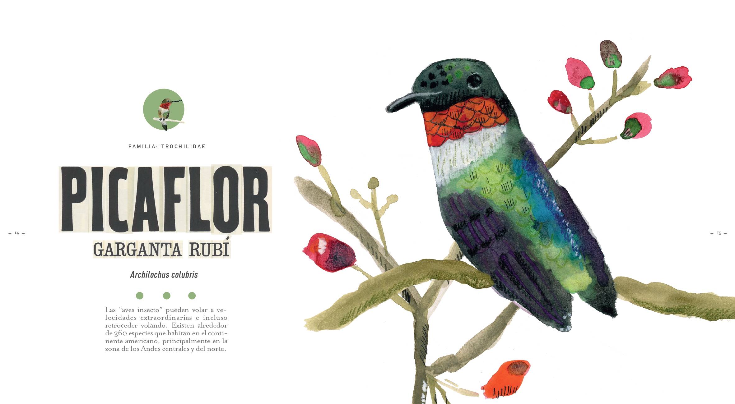 No sólo por seguir siendo gratis, mirar pájaros ha suplantado el hábito de enjaularlos. Patios y jardines conquistaron comederos y bebederos en honor a su espléndida libertad. Situación que difundió la curiosidad por su identificación, extendida a paseos y excursiones con ese fin, para todas las edades. En una versión menos nutrida que las guías ornitológicas, la especialista María Pía Floria (Esquel, 1983) en los textos y la diseñadora gráfica Marina Heller (Buenos Aires, 1982) en las ilustraciones, relevan en Aves migratorias once especies asiduas en territorio americano: picaflor garganta rubí, caburé grande, flamenco austral, pingüino patagónico, suriri boreal, abubilla, águila pescadora, cigüeña blanca, playero rojizo, gaviotín ártico y golondrina tijerita.