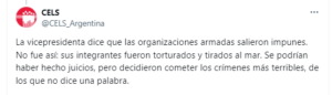 En los cuatro casos ha habido pronunciamientos judiciales que contradicen la pretensión de la Vicepresidenta Victoria Villarruel, de promover el enjuiciamiento y la condena de quienes resulten responsables. Villarruel dijo que el país "merece no ser un nido de impunidad". El CELS le respondió: