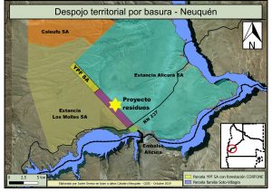 La provincia ya había armado una pinza institucional para despojar a Soto Villagra de 54 o 70 hectáreas —según distintos documentos oficiales—, para emplazar el proyecto Girsu del sur para la deposición final de los residuos domiciliarios de las localidades de Villa Pehuenia, Aluminé, San Martín de los Andes, Junín de los Andes, Piedra del Aguila, Villa Traful y Villa La Angostura. El campo de estepa alta es de 984 hectáreas, a las que quedó reducido después de perder las mejores tierras junto al río Limay cuando se realizó la represa hidroeléctrica Alicurá, sin recibir ningún tipo de compensación. La familia tiene documentada su presencia en esa tierra fiscal desde 1964, con expediente administrativo de solicitud de compra desde 1975 con sucesivos y renovados pedidos con cada nueva gestión de gobierno.