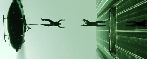 Esto ocurre a la media hora de un relato que dura más de dos. Y funciona como turning point, el punto en que culmina la cuenta regresiva de la historia, para que la acción despegue como un cohete. Hasta entonces, Neo es el alias que usa Thomas Anderson —un programador al servicio de una corporación que fabrica o comercializa software— cuando trabaja como hacker, es decir, cuando usa su compu para hacer cosas presuntamente ilegales. Neo es un nerd prototípico, que desconfía de la autoridad y ha picoteado Simulacros y simulación de Jean Baudrillard. Y por ende sospecha que detrás del sistema digital que rige nuestras muy analógicas vidas hay algo más, posiblemente siniestro, que al común de la gente se le escapa. Sólo sabe que viene cruzándose con sugestivas menciones a algo llamado "la Matriz" (the Matrix), y que los medios llaman a perseguir a un terrorista que se hace llamar Morfeo, como el dios de los sueños de los griegos, a quien se considera "el más peligroso de los hombres vivos".