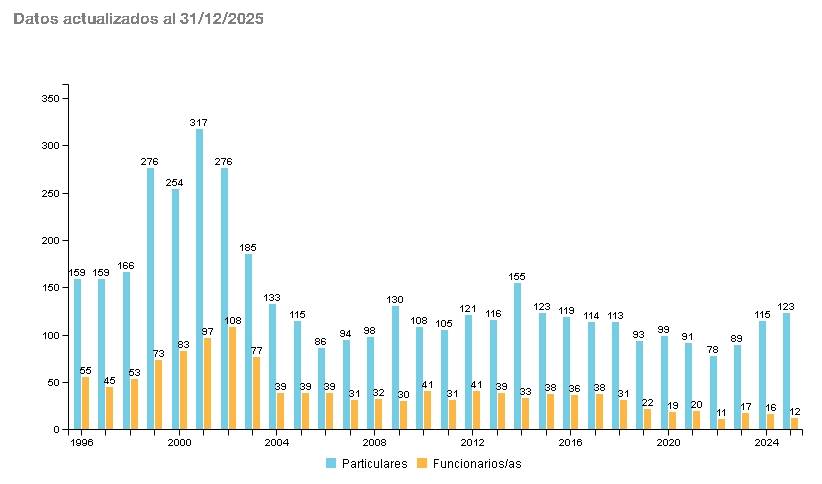 La respuesta puede estar en la política nacional que apela a las fuerzas de seguridad para reprimir la protesta social (con un paradigma estadounidense sin igual en décadas). Desde 2023, crece la cantidad de muertes de particulares en hechos con participación de fuerzas de seguridad: 89 en 2023; 115 en 2024; 123 en 2025. No crece en esa proporción la cantidad de funcionarios víctimas.