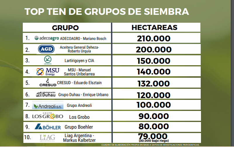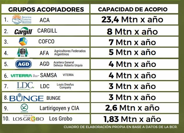 Otras diez sociedades aglutinan a los acopiadores, con puntos de contacto con los grandes grupos de siembra.