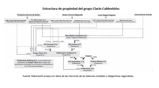 Una empresa de avanzada en la fuga de capitales es Cablevisión-Telecom, del grupo Clarín en conjunto con Fintech. En el presente año finalizó su fusión, y como consecuencia, en la actualidad tanto Cablevisión como Telecom conforman una misma sociedad. Estas firmas obtuvieron ganancias tras la devaluación por $ 3.400 millones, un 18% de sus ganancias operativas. Claro está, tras la conformación de un monopolio de la comunicación, la inversión productiva pasó a un segundo plano. Por ello no esperaron hasta fin de año y para septiembre del 2018 llevaban distribuidos en concepto de dividendos a los accionistas unos $24.000 millones (U$S 589 millones). Mientras tanto el destino de estos fondos es deglutido por la estructura de propiedad del grupo Clarín, conformada por un conjunto de empresas pantalla en las Islas Vírgenes Británicas, Delaware, y fideicomisos en Nueva York.