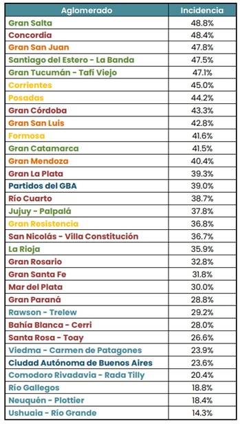 El análisis que sobre los datos del INDEC produjo el IIEP de la UBA explora también el panorama federal. De los 18 aglomerados urbanos cuyas tasas de empleo asalariado informal superaban en el tercer trimestre de 2024 el 36,6% de la global, nueve integran las regiones del noroeste o el noreste. Seis de ellos se ubicaban entre los diez peores registros de informalidad.