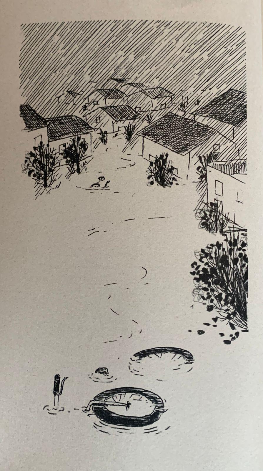 Una rutina aldeana se quiebra la mañana en que a Gustavo, el hijo del viudo Galíndez, no se lo encuentra por ninguna parte: “Volaban acusaciones de todo tipo, miradas de sospecha, denuncias por lo bajo, teorías infundadas, sueños arbitrarios que se analizaban como mensajes, recuerdos borrosos de los que nacían ideas imposibles. Y discusiones. Muchas discusiones”. La tormenta interrumpe la búsqueda, arrasa la inundación, demoran en bajar las aguas, vuelve el sol y el chico, porque sí, aparece lo más campante, “idéntico a esa ultima mañana, sin rastros de agua en el cuerpo ni en la ropa”. Los pobladores se reúnen en la plaza, su ágora, concluyen que, en el asunto, el río tuvo algo que ver. A partir de allí, las aguas desbordadas comienzan a operar al modo de un demiurgo caprichoso, pasan a ser “la catástrofe milagrosa”. De improviso, sin provocación alguna, el matón Peluche golpea en forma salvaje al borracho Roque; “‘Esto no puede quedar así, reclamábamos los justicieros. ‘Un golpe a un borracho es algo inaceptable’, reclamábamos los justicieros. ‘Pobre Roque’, lamentábamos, como siempre, los compasivos”.