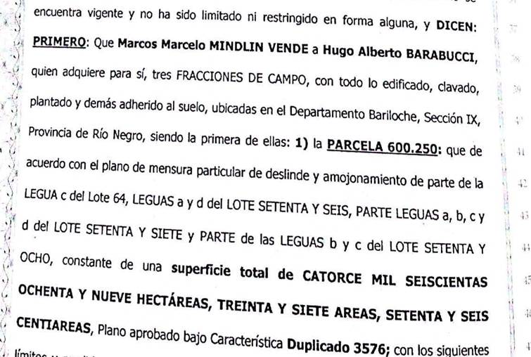 Barabucci denunció en febrero de 2023 que un grupo hizo un campamento en un sector de esas 14.000 que se usa tradicionalmente para el pastoreo de ganado en verano. Aseguró ser el dueño de las tierras y se constituyó como querellante en el legajo con la intervención de Magdalena Sanguinetti y Juan Ignacio Sarmiento, abogados de Bariloche.