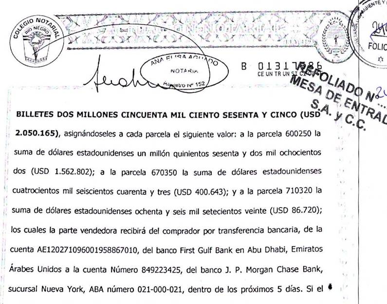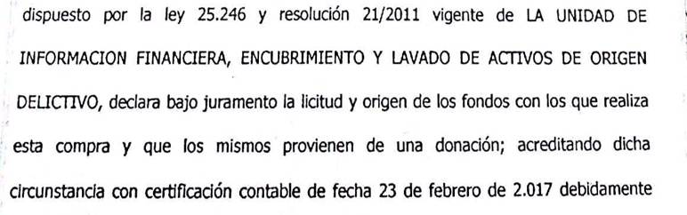 La documentación que presentó es la escritura de la compra realizada a su nombre al empresario Marcelo Mindlin en 2017, donde consta que pagó dos millones de dólares con dinero proveniente de una donación, con transferencias bancarias en el exterior. No aportó la documentación del fideicomiso Amaike, del que participa Barabucci como parte de un engranaje de sociedades anónimas formadas en la Argentina con inversores emiratíes como propietarios de los capitales.