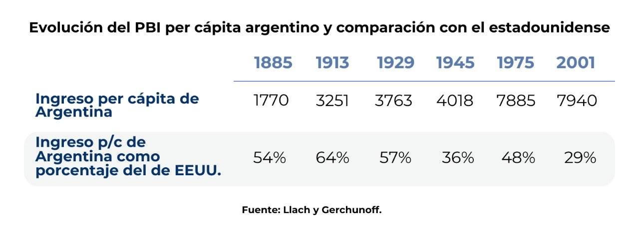 - En 1885 el ingreso per cápita argentino era el 74% del estadounidense;