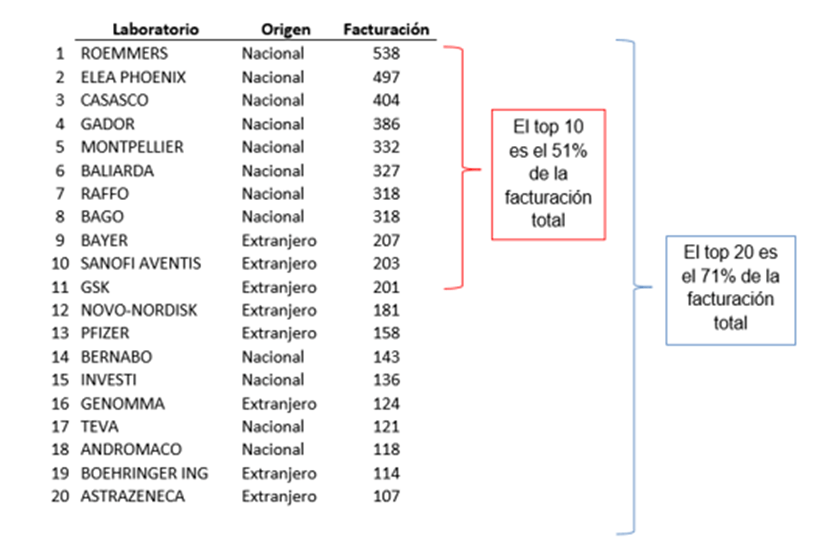 La Coalición Cívica denunció a Claudio Belocopitt (de Swiss Medial Group y Medicus) y a las prepagas por aumentar los precios de las cuotas ante la Comisión Nacional de Defensa de la Competencia ¿Qué plantean? Que los aumentos de enero/febrero son por un acuerdo celebrado en el marco de la cámara de empresas que los nuclean (UAS) y que, según la legislación vigente, la mera acción coordinada de dos o más competidores para fijar los precios a los consumidores es una conducta ilegal. Vean la facturación de los principales laboratorios en la Argentina. En millones de USD (a precios mayoristas) en 2021 (Fuente CILFA).